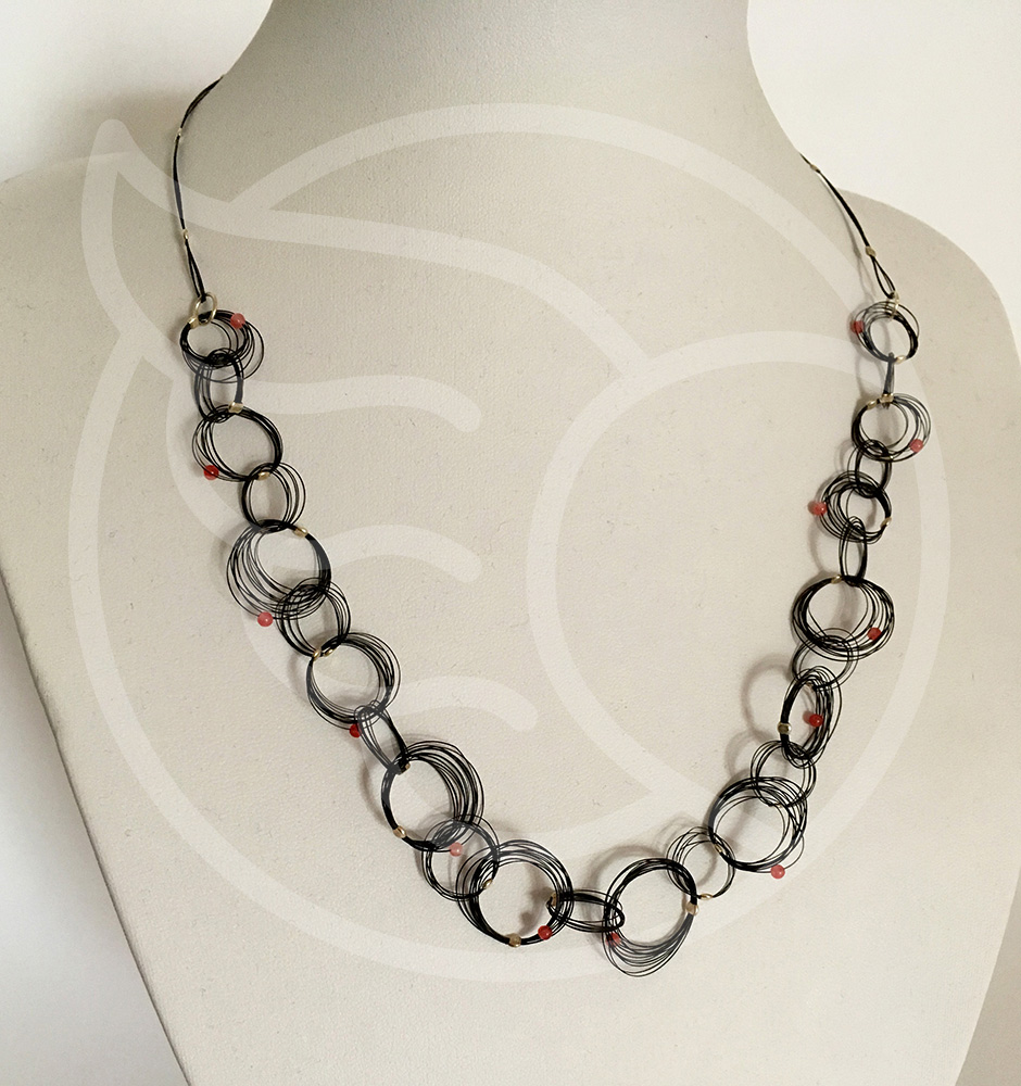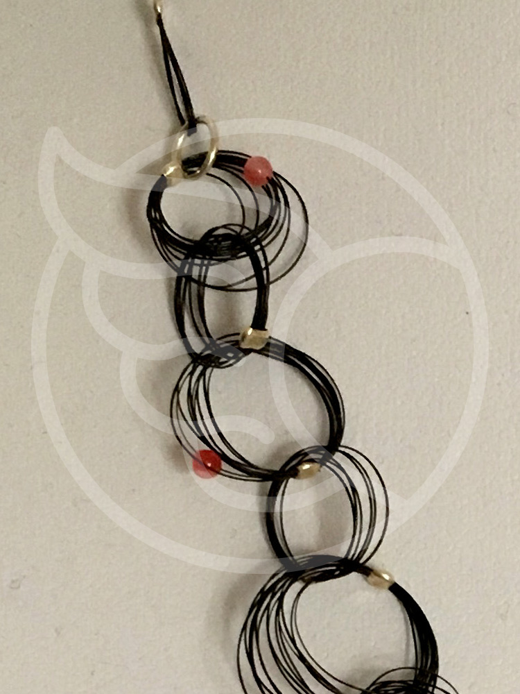 Crin de caballo color natural, Piedra ágata roja, Plata 125. Largo total 50 cms  Norma Ramírez Bustos +569 9342 2792