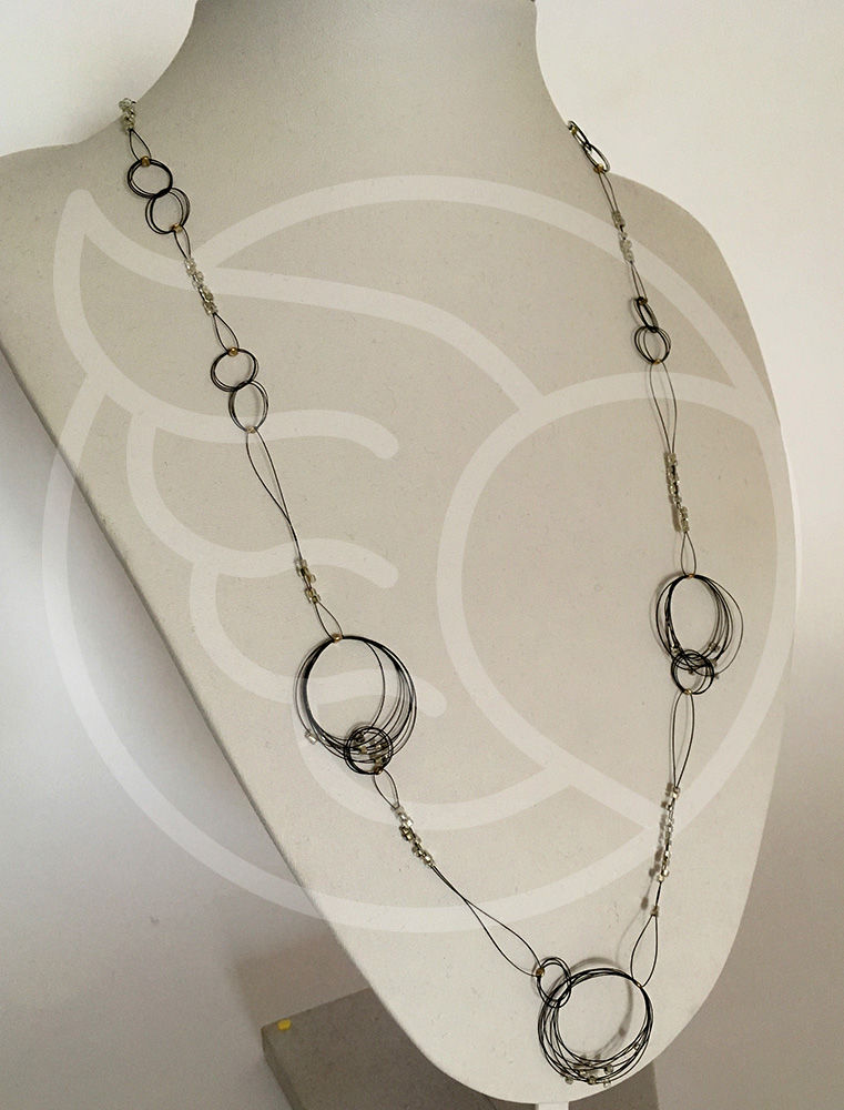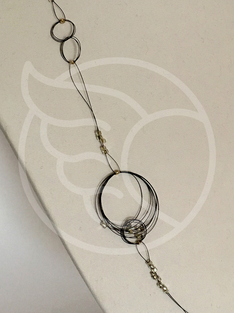 Crin de caballo color natural, Mostacilla de vidrio, Plata 125. Largo total 50 cms. Norma Ramírez Bustos +569 9342 2792