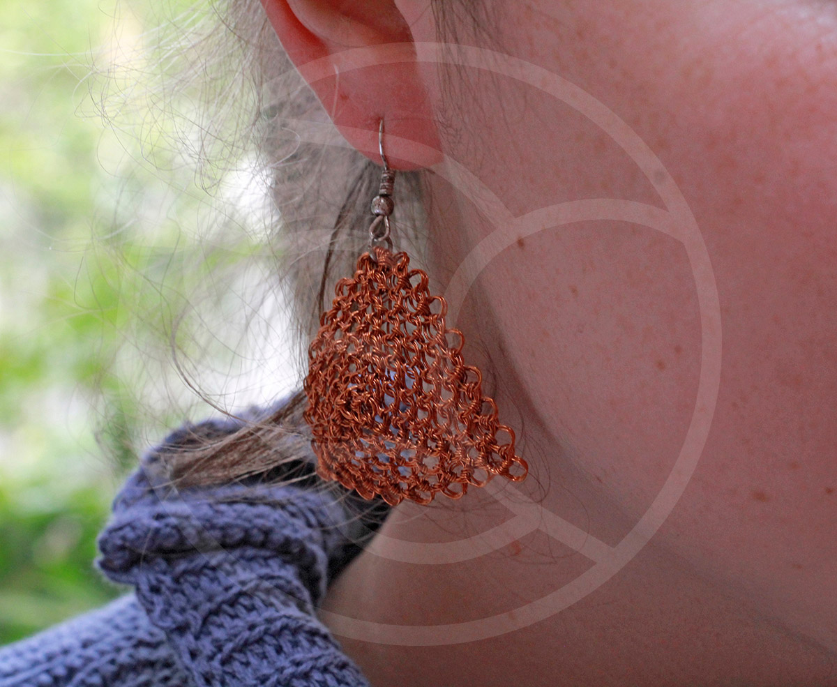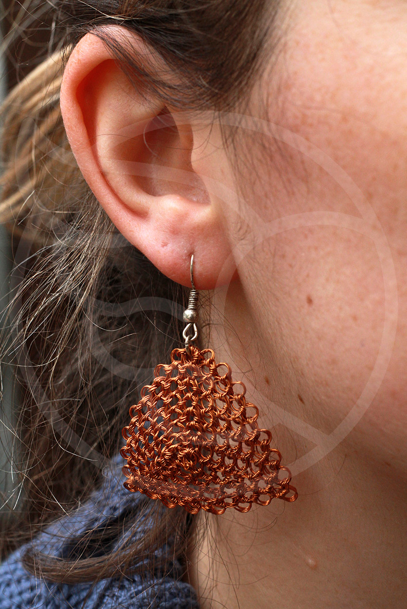 Aros tejidos a mano con hilo de cobre esmaltado en color natural y ganchos de acero quirúrgico. Tiempo mínimo de entrega 48 horas.